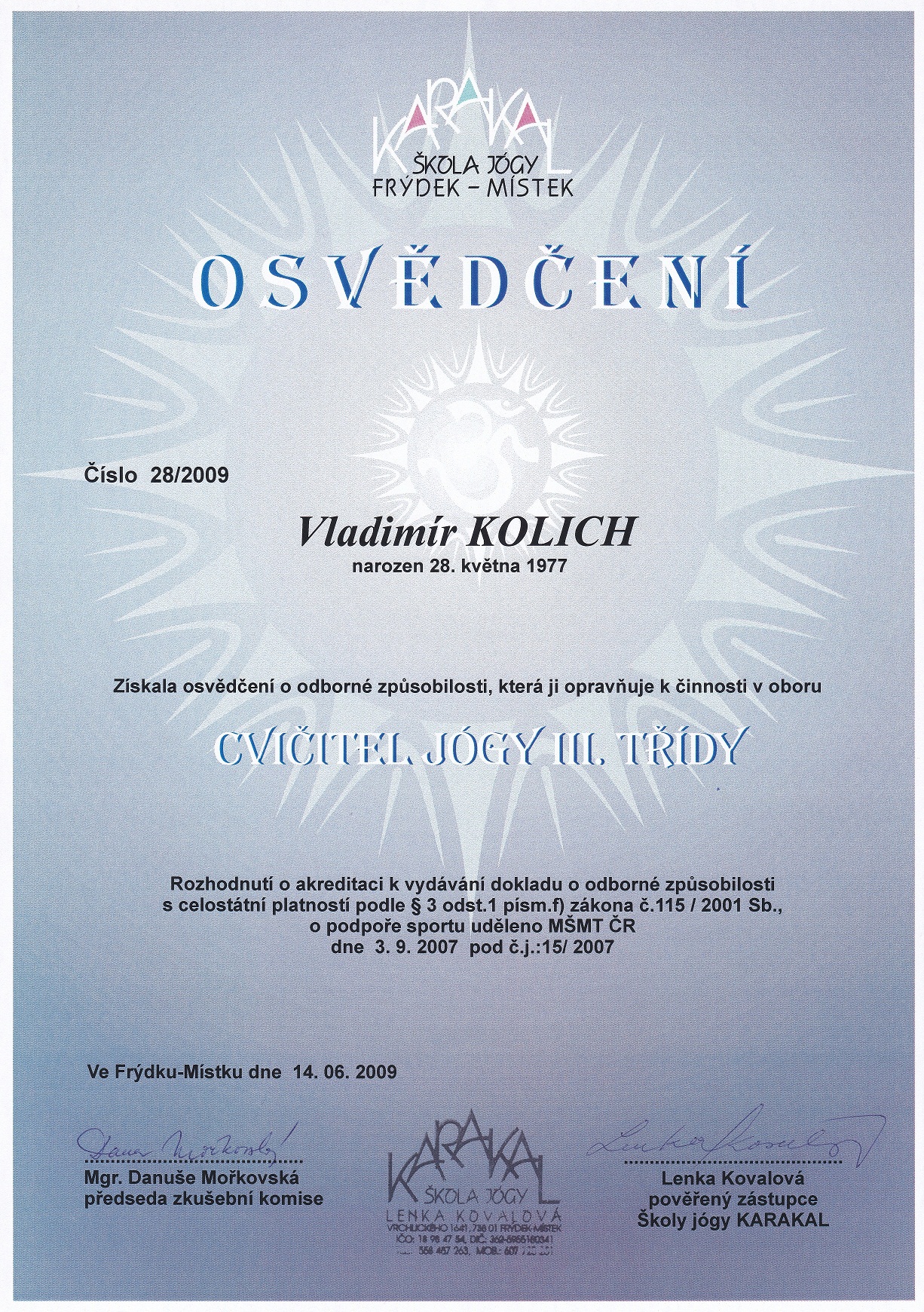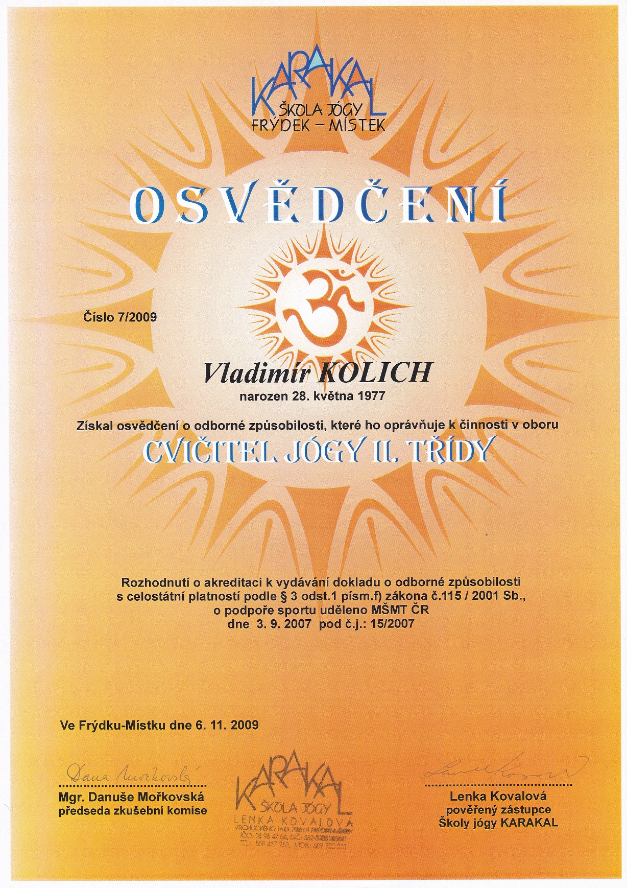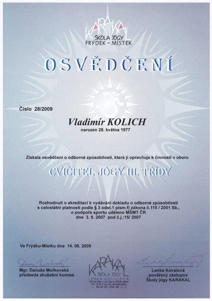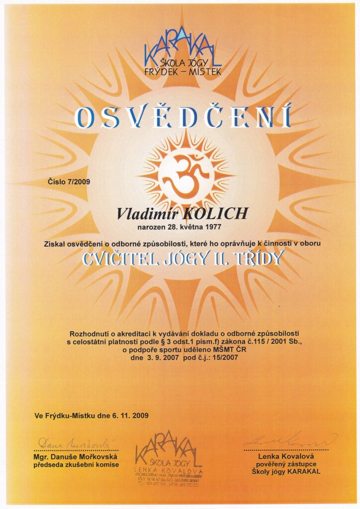 Narodil jsem se v Havířově v Květnu 1977, již od mládí jsem nějak podvědomě přemýšlel o tom jak to udělat, abych mohl žít dlouhý život ve zdraví. V osudu jsem měl napsáno, že již v roce 1992 jsem se poprvé setkal s homeopatií paní Ing. Marty Kafkové, tehdy jen na kontrolu, kde mne vzali rodiče. S výsledkem, že vše je v pořádku a není potřeba aktuálně nic řešit, jsem byl potěšen. Jelikož jsem po ukončení střední školy začal v roce 1998 pracovat jako obchodní zástupce v informačních technologiích, tak se po několika letech sedavé zaměstnání začalo projevovat občasnou bolesti v zádech. I když jsem byl rekreačním sportovcem všeho druhu, hledal jsem nějaký způsob, jak zádům ulevit. V roce 2003 mne do života přišlo cvičení jógy u pana Herberta Konečného, kde již po prvním měsíci pravidelného cvičení bolesti zad ustoupily. I když jsem tomu cvičebnímu systému v té době moc nerozuměl, v pravidelném cvičení v Klubu Jógy Ostrava jsem pokračoval a to až do roku 2020. Následně jsem pravidelně cvičil již sám. V roce 2009 jsem si na doporučení učitele pana Konečného udělal zkoušky Učitele Jógy III. stupně a v návaznosti v témže roce zkoušky Učitele Jógy II. stupně.